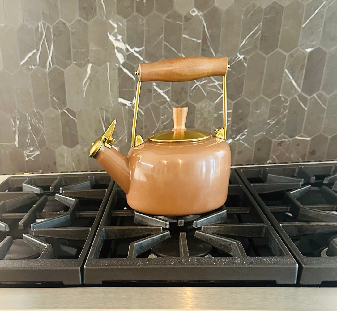 Inspired by Pantone's 2025 Color of the Year, Mocha Mousse, this teakettle embraces the warmth and richness of this sophisticated brown hue.